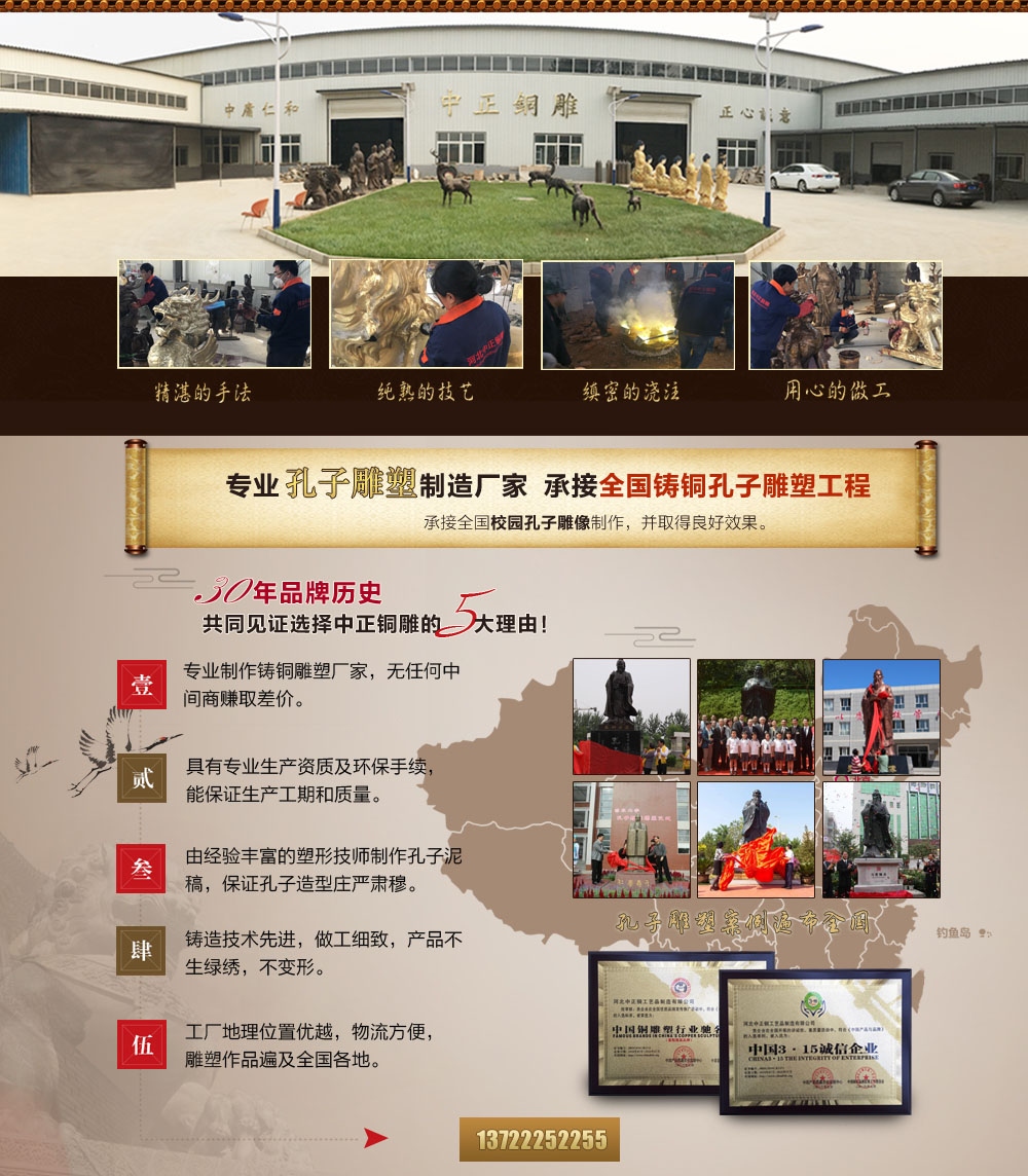 我們廠還具有優越的地理位置,離北京、天津都非常近,交通便利,物流方便。我們本著重合同、守信譽、讓客戶滿意的經營理念。竭誠為國內外客戶提供優質的服務,愿與新老客一起攜手通過孔子雕塑的制作弘揚中國傳統儒家文化,共創美好未來。